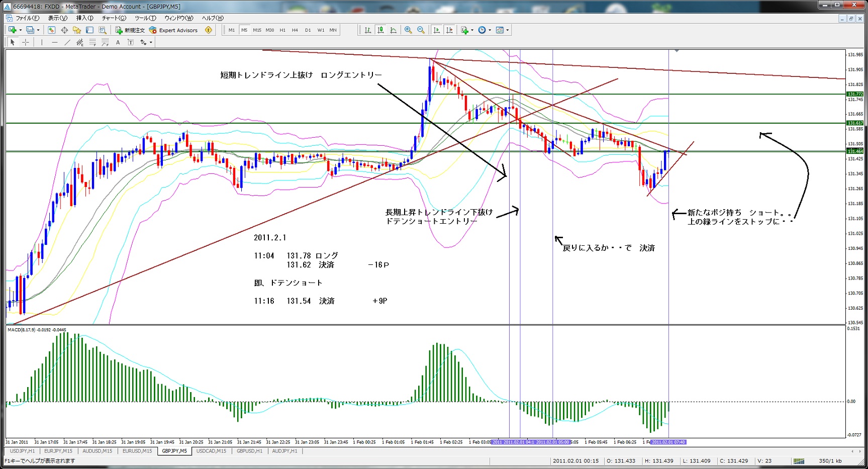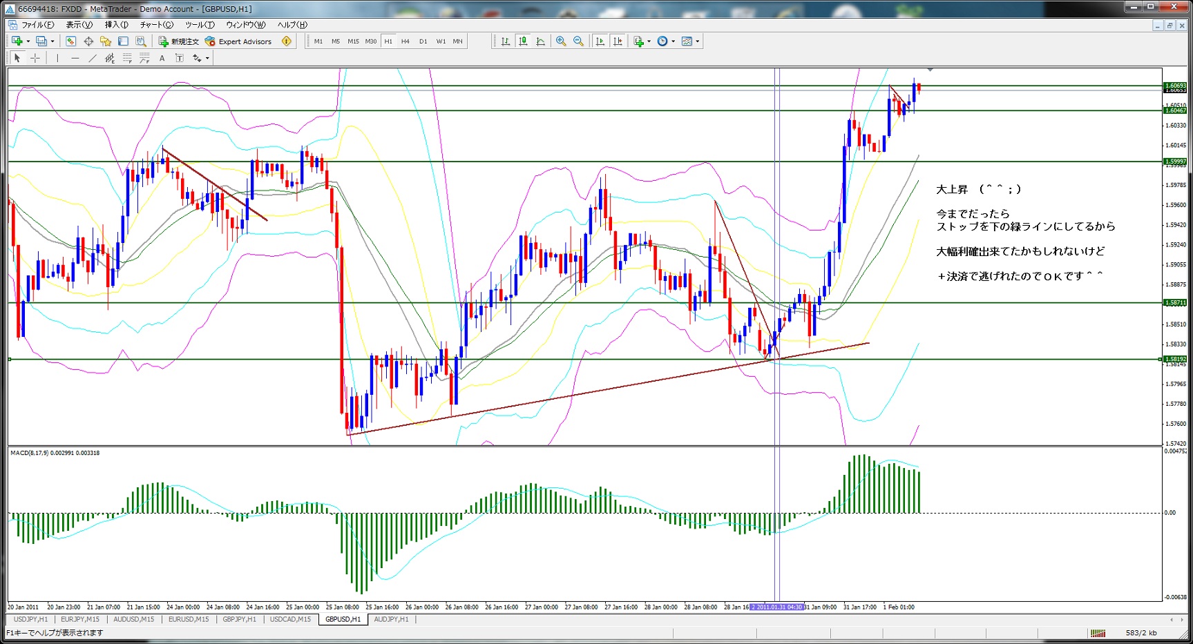 2011.1.31 1H ラインブレイク トレンド微妙