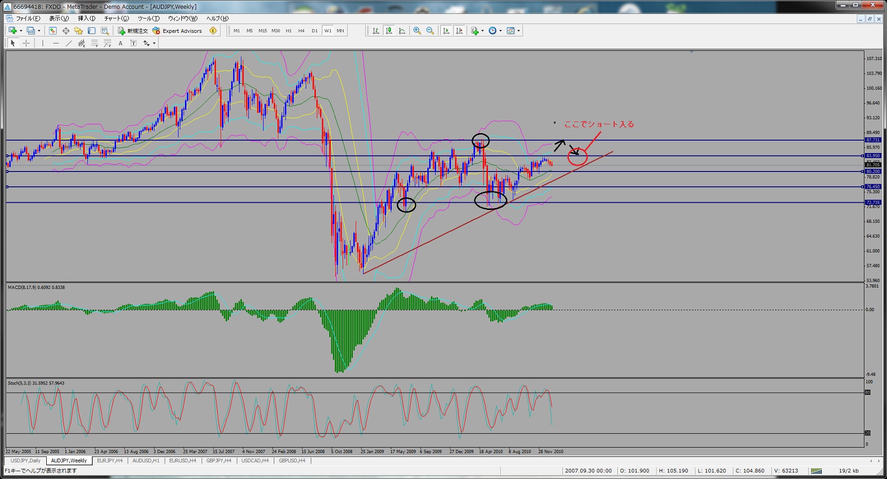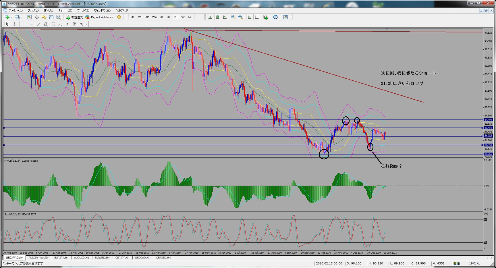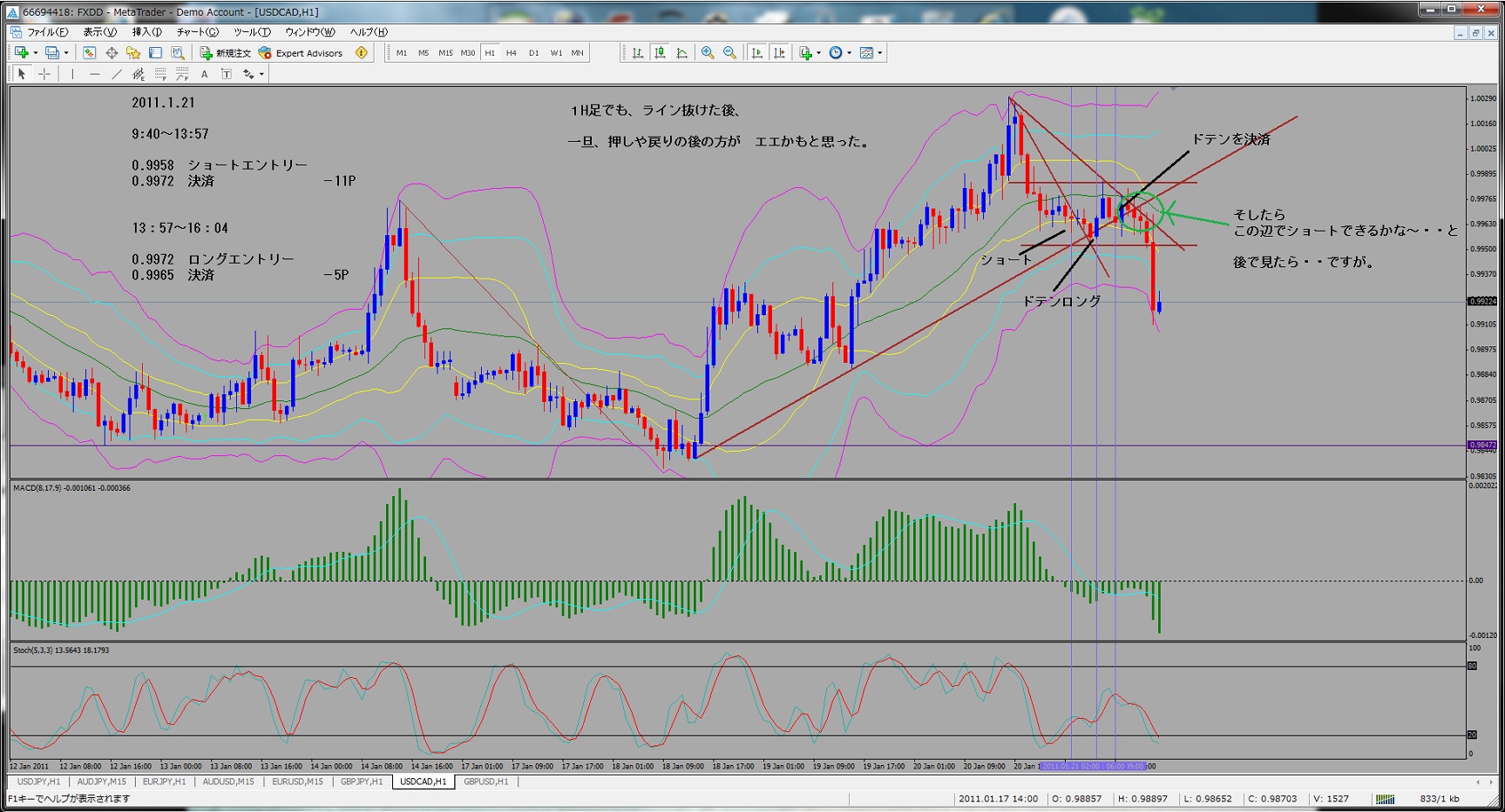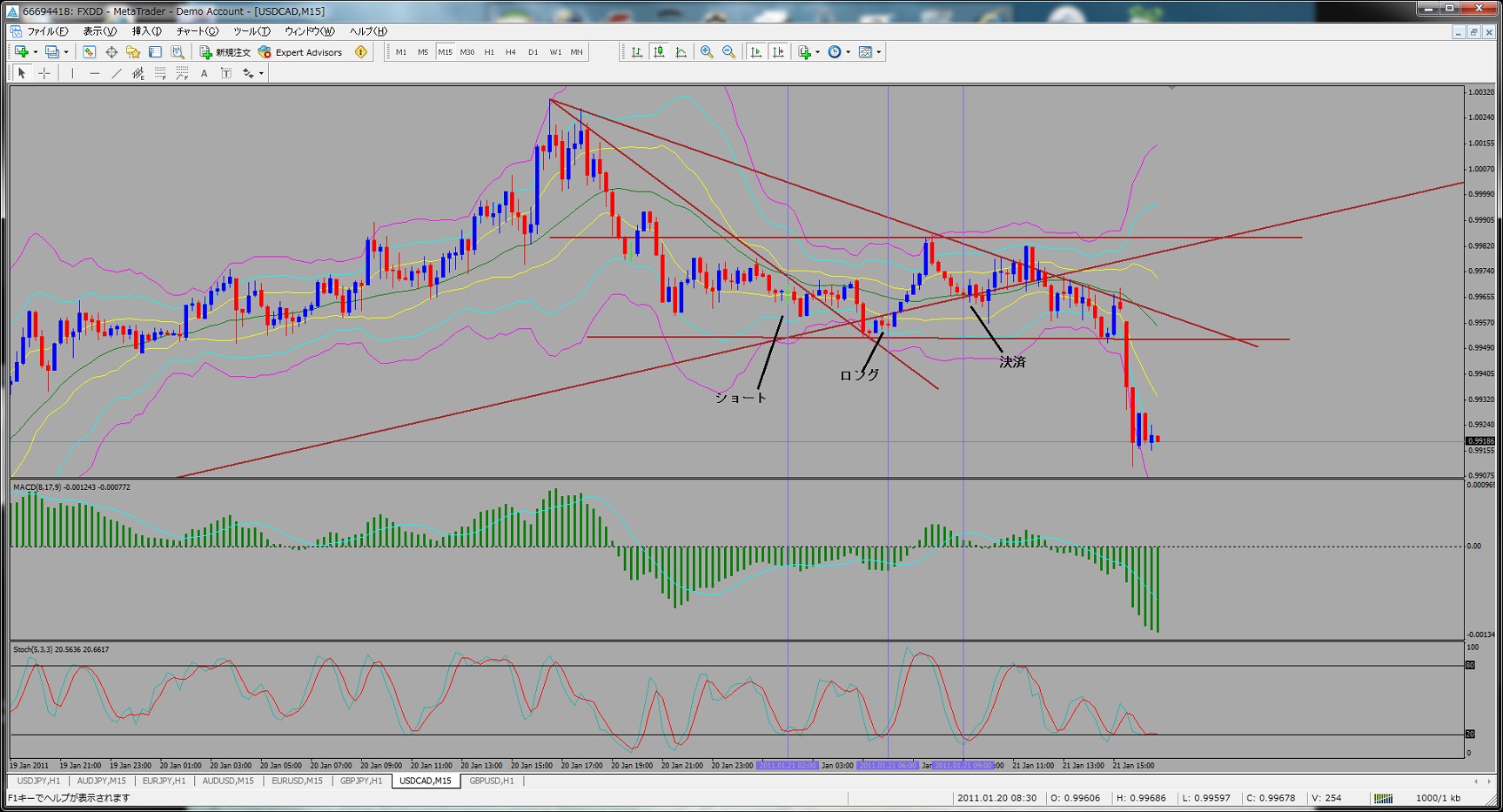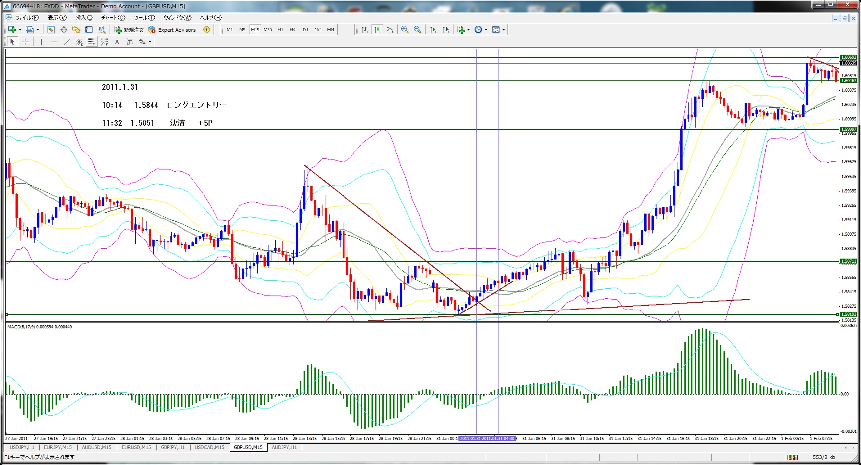 2011.1.31 15m ラインブレイク トレンド方向微妙